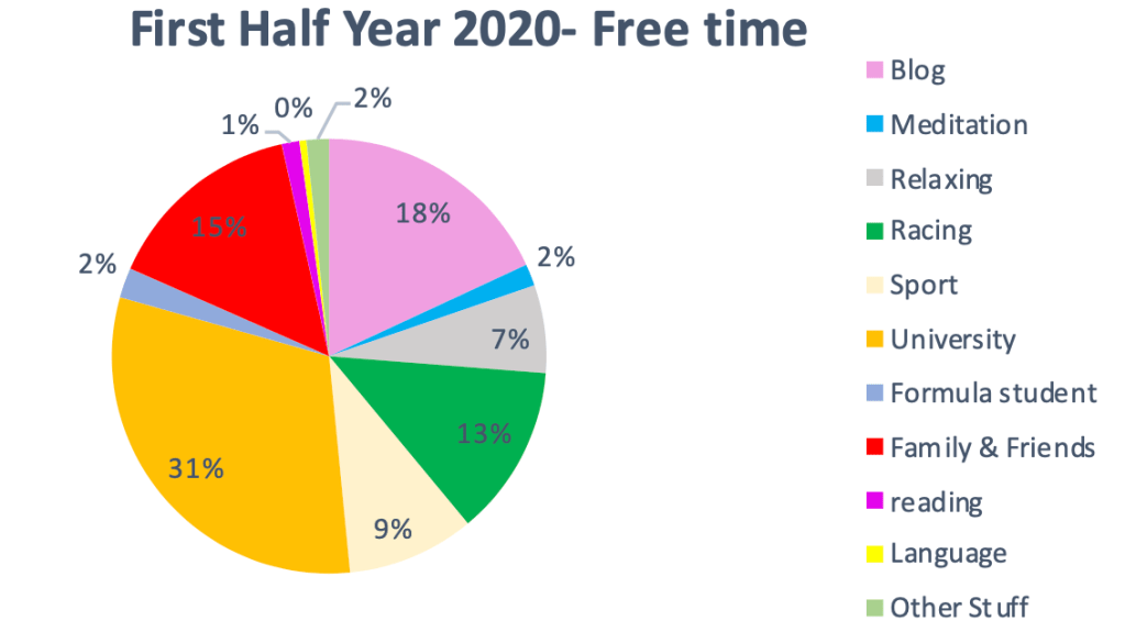 Am I still on the right path towards success? I guess so! Looking at the numbers, they represent exactly what I felt. I am doing not enough sport and racing, but doing great in all the other fields of my life. With my next semester being only the master thesis, I should be able to do more sport, therefore the complete 2020 statistic will be fine after all. But we will see!