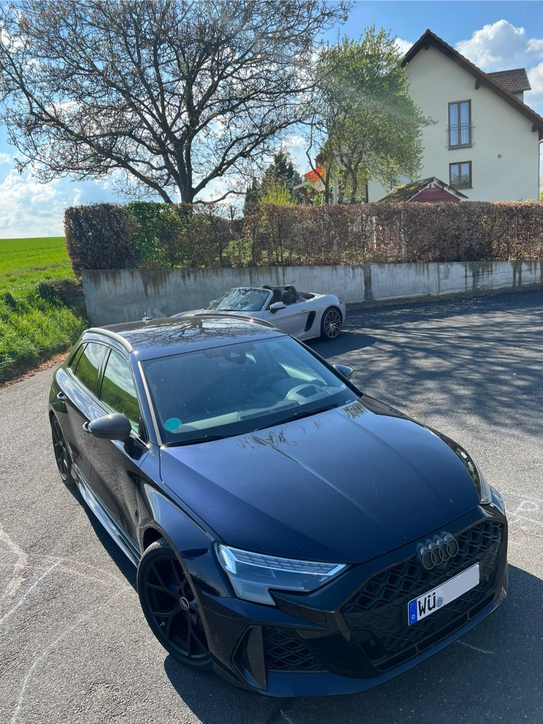 Last Sunday was Eastern. Not that I would be religious, at least not anymore, but it was still nice to have a couple of days off. Time to relax … Ah, well, yes, exactly! Not really! I had the week before off and we used the time for my gf moving in to me. So much about relaxing! But at least during the weekend I had time! Well, not really! My friend Lukas was visiting me. It’s been a while since we met, so there was a lot to talk about. And gosh, we talked for hours without end and still haven’t really talked about everything that was going on. Well, on Sunday we wanted to use the nice weather and had a little tour through the nearby countryside. We were five people in two cars. My Audi RS3 and my friend’s current car, a Porsche 718 Boxster GTS 4.0. Well, everyone wanted to take a seat in the convertible, which I can’t understand. I don’t like open cars at all. In fact, I hate them! I would rather walk! And even though the weather might look nice in this picture, we are talking about mid April weather. That’s like 15 degrees which feels like 7 while sitting in the car.