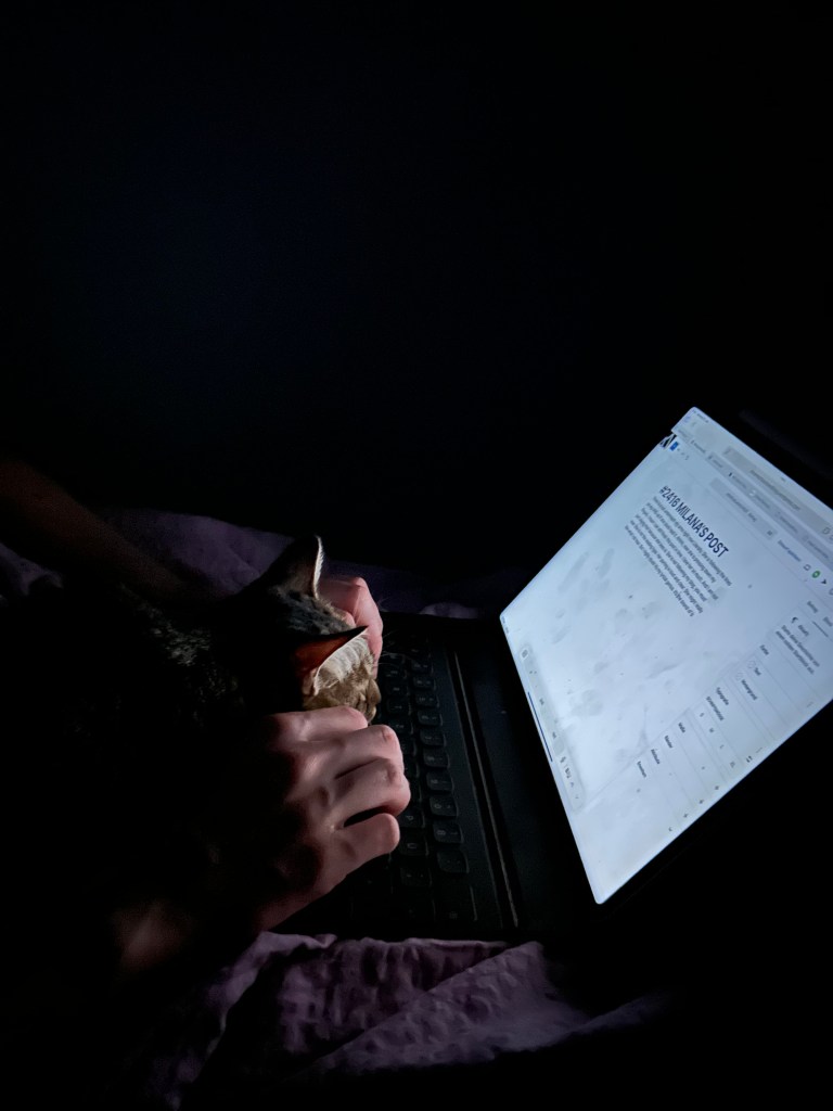 There is a cat underneath my arms right now Literally. She is following the lines on my IPAD as if she could read it. Ahhhh, now she is pressing down my fingers. I hope I can still finish this post in time. I love her so much. And I am not just saying that because she sees is. She is not following my blog, you must now. She is not the reading type. Her purring is loud and clear. She might really like what I do hear. But I highly doubt it’s my lyrical genius. It’s the sound of the keyboard and I know it. The plastic keyboard of the iPad works but I can’t reach the keys any longer. She wantbbsbs bbb eve to db s top. Spo bye!